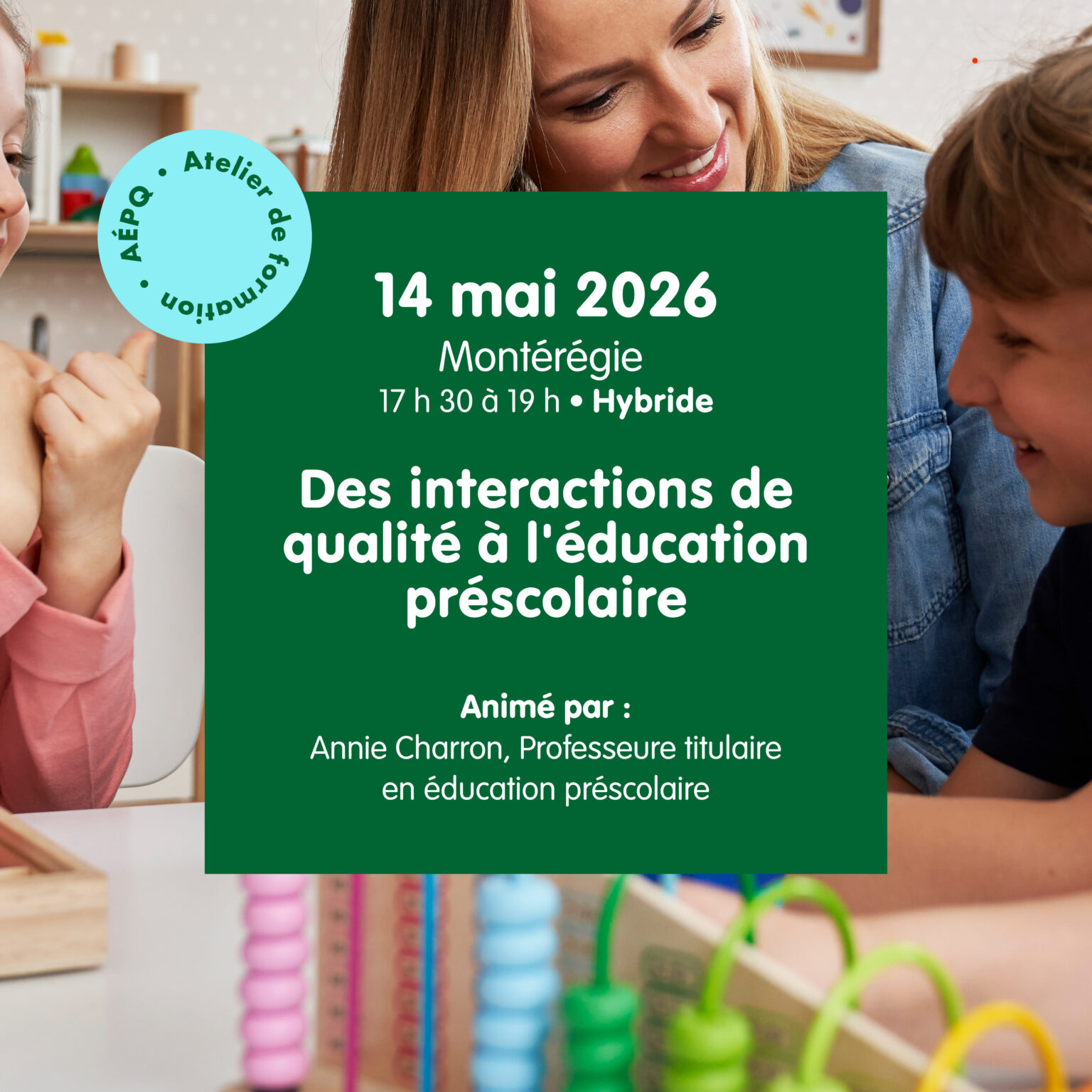 En cohérence avec le modèle Teaching Through Interactions (Pianta et al., 2013), cet atelier propose d’explorer les trois domaines qui structurent la qualité des interactions : le soutien émotionnel, l’organisation de la classe et le soutien à l’apprentissage, ainsi que leur rôle déterminant pour soutenir le développement global des enfants.