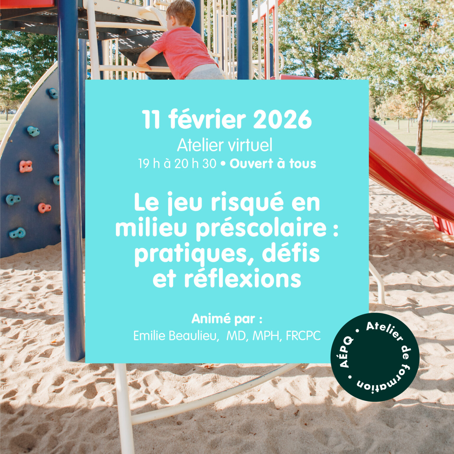 Dr. Emilie Beaulieu est pédiatre générale au CHU-de Québec-Université Laval et détient une maitrise en santé publique de l’Université de la Colombie-Britannique. En plus de son temps en clinique auprès des enfants, elle fait de la recherche visant à prévenir plus efficacement les blessures non intentionnelles sévères et mortelles chez les enfants, incluant les collisions de la route et les noyades. Bien que cela puisse sembler paradoxal, elle est l’auteure principale de l’énoncé de principe sur le jeu risqué publié par la Société Canadienne de pédiatrie en janvier 2024, qui vise à promouvoir le jeu libre et risqué malgré une possibilité de blessure, étant donné les multiples bénéfices sur le développement de l’enfant.